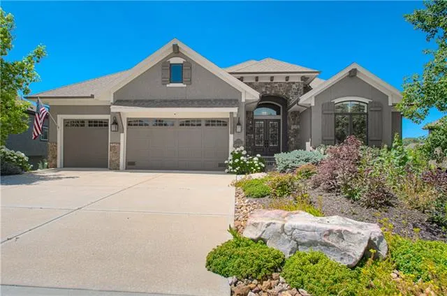 Welcome to this amazing reverse 1.5-story home in highly desirable Coffee Creek Crossings in Overland Park! Nestled on a private, treed lot with accent landscape lighting on backyard trees and backs up to scenic trails with direct access to Heritage Park, this home blends comfort, luxury, and convenience. The main level offers two spacious bedrooms, including a serene primary suite, while the finished lower level features two additional bedrooms, a wet bar, and a dedicated exercise room. The gourmet kitchen is a chefGÇÖs dream with a gas cooktop, pot filler, double oven, upgraded lighting, and sleek flooring throughout. Not to mention the upgraded landscaping in front of house along curve and side of driveway, the garage floor epoxied and also a whole house carbon monoxide sensor in the attic. Entertaining is easy with the formal dining room that flows seamlessly onto a screened-in, covered deck complete with a stone fireplace and built-in grill. Thoughtful upgrades include a newer AC and furnace, water softener, and a mudroom with a large walk-in pantry and laundry area just off the garage. This home has been impeccably maintained and is move-in ready. Neighborhood amenities include a community pool, green space, parks, and walking trailsGÇöall just minutes from top-rated schools, shopping, restaurants, and highway access. A true gem in a prime location! All that and a assumable VA loan.