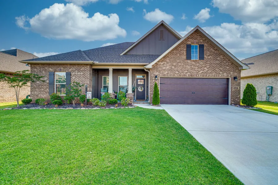 Better than new 2 year old home with fence and endless upgrades! This modern 4 bed, 2 bath slab boasts an open design with a demanding stone accented fireplace plus crown molding and wood flooring throughout the main living area. The heart of the home spares no detail with the eat-in granite kitchen island, electric range, under cabinet lighting, pantry and refrigerator! Long list of additional features includes a boot bench, storage closet in the laundry room and more! Isolated owners suite with a step in shower, soaking tub and extra large closet. Enjoy Alabama sunsets from the covered back porch and huge fenced backyard.