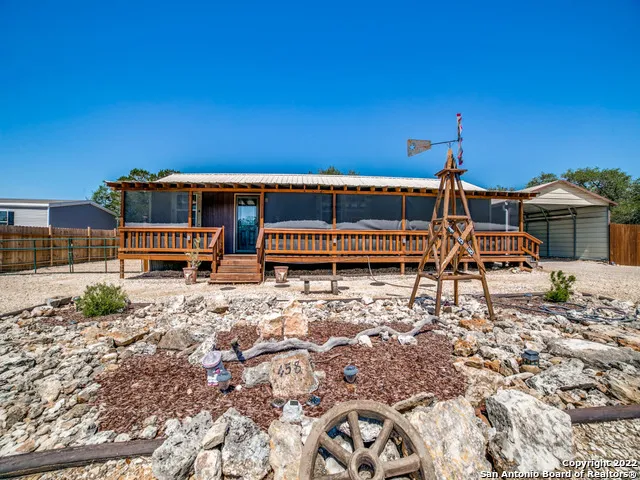 Holiday Villages - Charming 1/1 750 sqft country home provides peace & tranquility as you relax on your 6ft covered front porch the full length of the cabin. With the 350 sqft Studio out your back door the possibilities are endless as a residential, income producer or mini getaway for your family & friends which includes a gorgeous detached studio for your comfort. Spacious kitchen, large laundry room, open concept living, storm doors, master w/ceiling fan & walk-in closet. Studio could be 2nd bed, art-sewing room, storage or just whatever your need. Fully fenced privacy on 3 sides gates on the sides of the house. Large fenced back yard, small fenced area also, metal carport, storage bldg, full RV hookups, water catchment system on both buildings. Enjoy sitting on the front or back porch with friends & family as the entertainment continues with the community pool, volleyball, boat ramp and more. Gated entry, calm and quiet area of the county! Come enjoy the Texas Hill Country & Lake Medina just minutes from the house high above the water line. Come Stay or play!