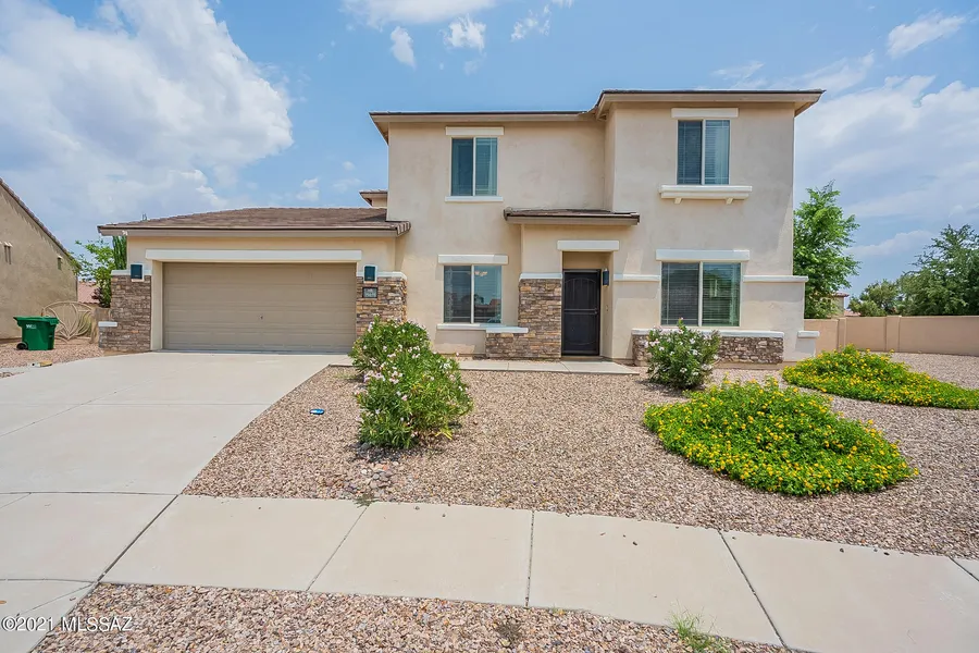 Impeccably maintained home located in the popular Rancho Sahuarita subdivision. Situated on an extra-large lot this home features four bedrooms, two & half baths, and a three-car tandem garage. The home is light and bright, with neutral paint tones throughout. The kitchen features a cook's island, quartz counters, stainless appliances and custom tile back splash. A formal living & dining room and half bath compliments the rest of the main floor. The master bedroom and three spacious guest rooms are upstairs. The large master suite offers dual vanities, a garden tub, separate shower, and oversized walk-in closet. Step out through the sliding glass door to the master suite balcony and enjoy Santa Mountain views.