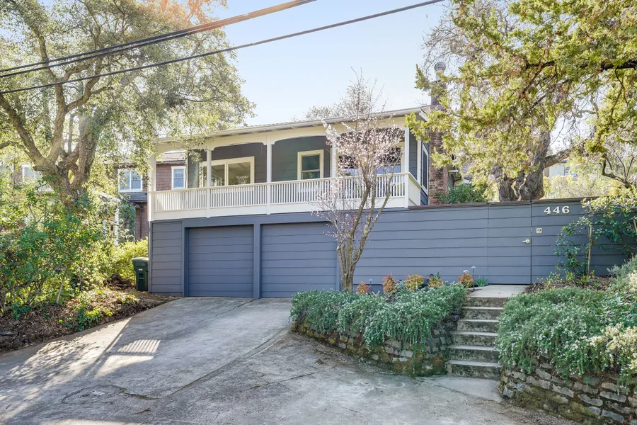 This updated four bedroom, three bathroom home is nestled in a peaceful, serene setting in Emerald Hills. The entry level features an updated kitchen with stainless steel appliances and a breakfast bar, and the spacious light-filled living room that opens to a gorgeous patio. Two bedrooms, sharing a full bathroom, and a conveniently located laundry area are found as you make your way through the house. Upstairs, the primary suite boasts a jetted tub and private balcony, perfectly situated tp enjoy the serene views of the outdoors. Tucked away at the front of the house is a warm and inviting family room-den with its own balcony, along with an additional bedroom and full bathroom. A well-lit spiral staircase leads to the attached two car garage. Relax or entertain in the quiet and private, terraced backyard with mature landscaping and several seating areas. Located moments from vibrant downtown Redwood City. Close proximity to commute routes.