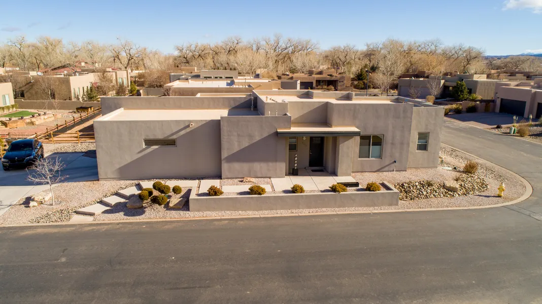 Cozy Contemporary 3bed/2 bath home located in the beautiful gated subdivision of Bosque Del Rio Grande! This home boosts many beautiful upgrades and stunning views of the Sandia Mountains from your own backyard! The elegance of the gas fireplace in the living room can be enjoyed throughout this open living space . Upgraded lighting fixtures, faucets, barn doors, appliances, water softener, a nest thermostat & fire alarms, and upgraded closets make this a move-in ready home. This home has an extended garage complete with custom built in tool closets along the walls and an already coated floor. Don't wait and let this cozy ''Basque Resort'' slip away. Schedule a showing now!...