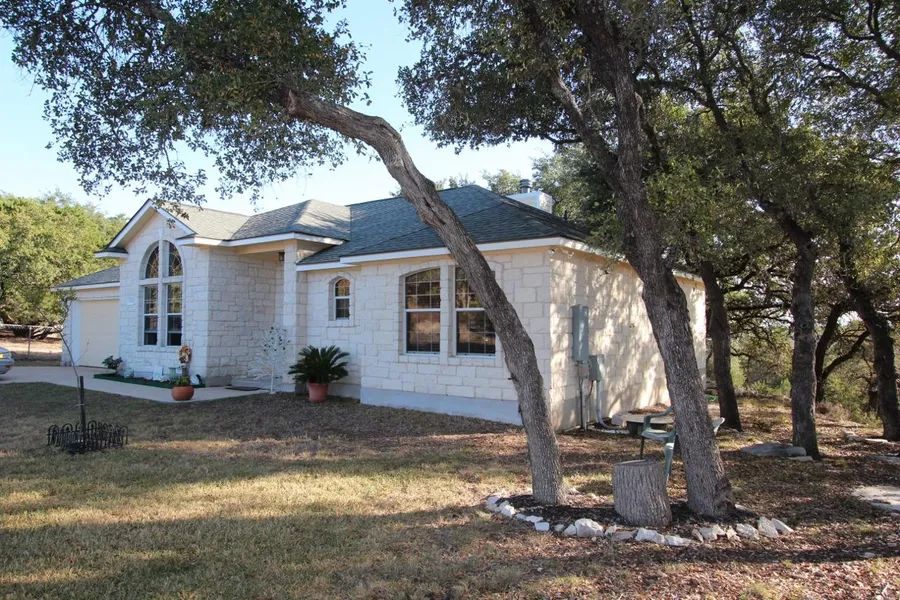 Beautiful custom home with great views from the back porch! This 3 bedroom, 2 bath home offers an open floor plan with vaulted ceilings, formal dining room, mother-in-law plan, lots of tile and laminate flooring, and romantic fireplace in the family room! The master bedroom has a sitting room that could be a small office space. Enjoy the expanded back patio beneath the shade trees overlooking the hill country! Just minutes to the lake!
