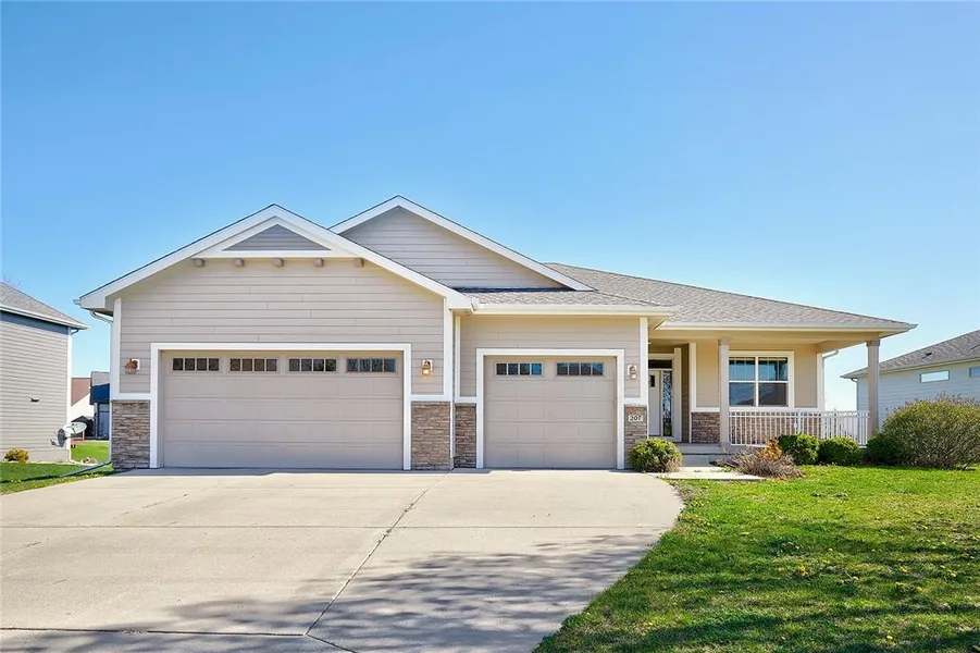 You'll love this well cared for 5 bedroom ranch in Norwalk! Tucked away on the south side of The Legacy, this quality-built, 2x6 construction ranch home boasts over 3,500 sq of finish. Step inside and be greeted by the elegant custom medallion inlay at the entry, setting the tone for the mission-style details found throughout the home. The open-concept living area, kitchen, and dining space showcase beautiful hickory hardwood floors, granite countertops, and an electric fireplace. The split bedroom layout ensures privacy for the primary suite, featuring a tray ceiling, walk-in closet, and a luxurious ensuite bathroom complete with a dual sink vanity and a large walk-in rain shower. There are 2 additional bedrooms on the main level - one of which has been transformed into a functional office space with beautiful French doors.A main-level laundry/mudroom situated off of the oversized 3 car...