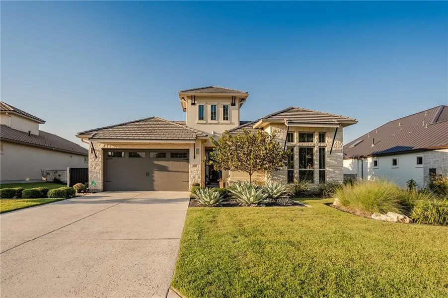 VIEWS and LOCATION! Perfectly positioned and setback on the 14th hole with tee to green views. Upon entering the home, there is a entertainers dream casita with a full bath and large walk-in closet. The primary structure and casita are separated by a gorgeous outdoor courtyard to enjoy beautiful Texas nights with friends and family. When entering the home, your eyes are greeted with high ceilings, interior beams and tons of natural Texas light. To the right when entering is a study that has window views looking into the courtyard. The additional two bedrooms in the primary structure are the primary and additional guest bedroom. Both have their own privacy and full bathrooms. The kitchen is a chef's dream! Double ovens, propane gas and cooktop/range. Now.. we can get to the backyard.. WOW! Outdoor kitchen, covered patio and views of the golf course from perfectly positioned pool. This hom...