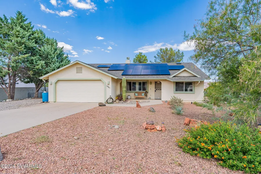 Welcome to your dream home in the picturesque Clarkdale, Arizona! This fantastic 3-bedroom, 2-bath residence offers a desirable split floor plan, maximizing both space and comfort while providing stunning views of Mingus Mountain. Step inside to discover beautiful wood laminate flooring that leads you into a spacious great room, perfect for entertaining or relaxing with family. The stylish kitchen boasts a breakfast bar, a convenient pantry, and a skylight that fills the space with natural light, making it a chef's delight. Outside, you'll find a fully fenced backyard that promises your own private oasis, complete with a lovely garden area and fruit trees. The hot tub offers a perfect retreat after a long day. Equipped with a solar system, allowing for efficiency and cost savings.