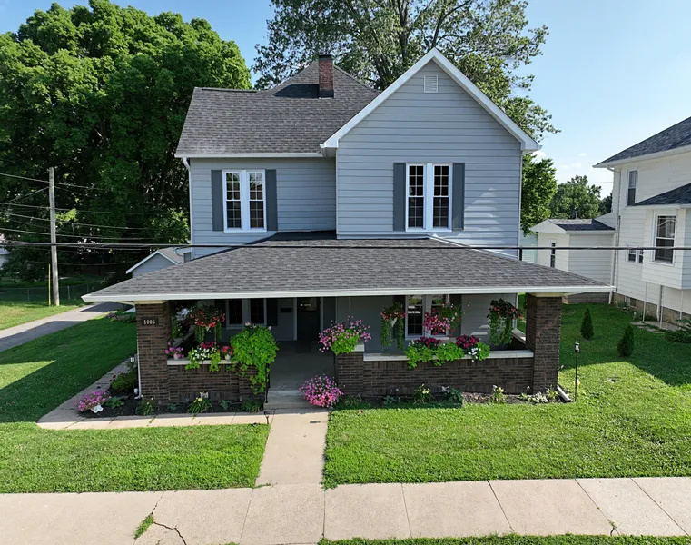 This beautifully renovated two-story home features a stunning covered front porch, perfect for relaxation. New flooring has been installed throughout. The expansive downstairs area comprises a spacious living room, dining room and an additional room that could be used as an office or possible 4th bedroom, a full bath, and a half bath. The kitchen features white custom cabinets, granite countertops, and a main level laundry room. A stunning staircase leads to the second level, where you'll discover a full bath and three generously sized bedrooms. The outdoor space is perfect for relaxation, with an enclosed back porch, concrete patio, and detached two-car garage. A separate outbuilding offers a dedicated space and versatility as a home office or man cave. Conveniently situated near the hospital, park, golf course, and schools. This magnificent home is must-see. Please click on the link be...