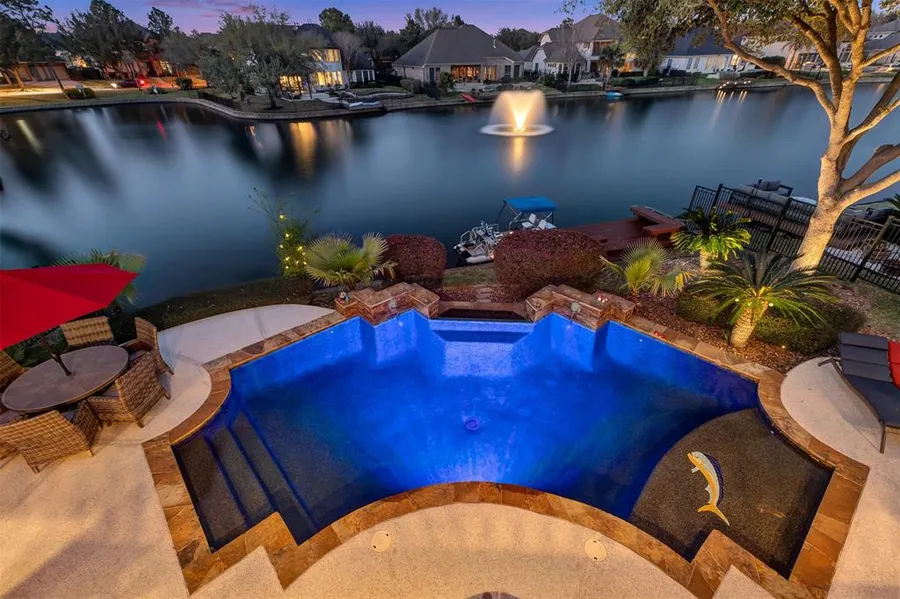 Imagine living in your own resort style home! Spectacular Lakefront Home with an incredible infinity pool, firepit, and its own boat dock and pontoon boat! Ideal for entertainment, this home offers an open concept floor plan! The family room features a floor to ceiling stone fireplace, and it overlooks the incredible back yard. The gourmet kitchen opens to the family room. There is a home-office located on the ground floor, along with a formal dining room and formal living room. The primary suite has an incredible view of the lake. Upstairs is a spacious game room, which opens to a fabulous terrace with a stunning view of the lake. Three secondary bedrooms are on the second floor. Being on the large Avalon Lake, you can enjoy beautiful sunset rides on the electric pontoon boat throughout the year! Avalon at Seven Meadows is a sought after gated community in Katy, zoned to...