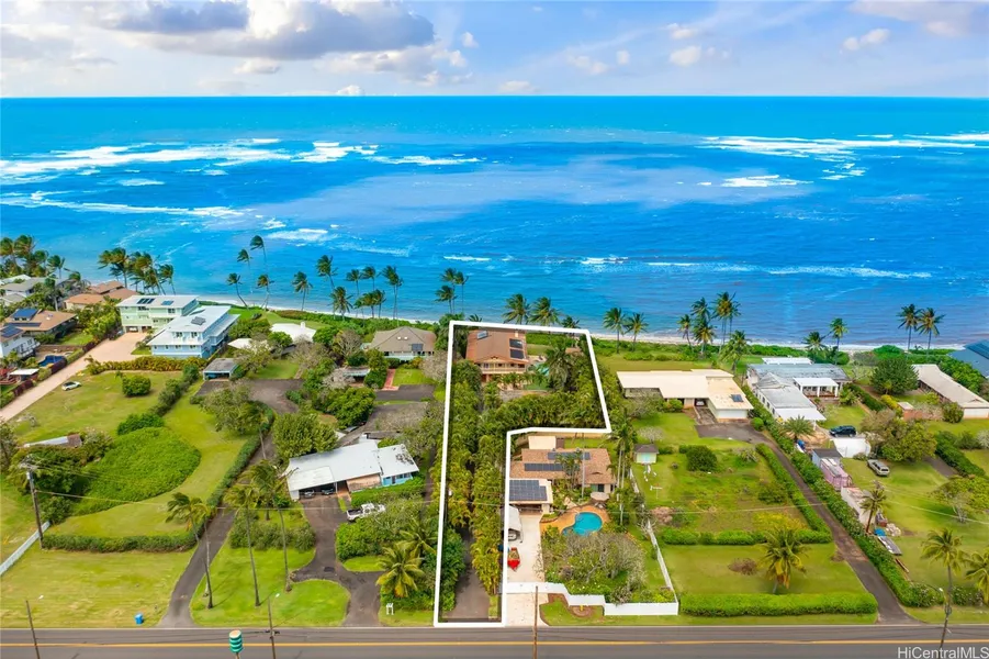 Take a glimpse at this private oceanfront estate in the heart of Waialua with a sandy beach just steps from your door. After a long day surfing and swimming in the ocean or pool, escape upstairs and enjoy this large, spacious home with ocean and mountain views from every room and plenty of space for privacy. Watch the sunset into the horizon from the front deck. If it happens to be raining outside and a pool day isn't possible put your feet up and a movie on in the home theater. This home is the perfect escape for anyone. This will be sold together with the neighboring parcel TMK: 1-6-7-13-32, MLS # 202310636. Don't miss the plat map in the supplements section. Total lot square footage of both TMK's is 24,890.
