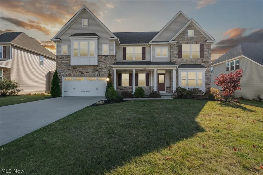 Don't miss this stunning 5-bed, 4-bath home built in 2018 with well over 4,000 sq ft of living area including the finished basement! Outside, enjoy a covered porch, stone elevation, and upscale finishes. Inside, find a formal dining room, cozy great room with stone fireplace, chef's kitchen with granite counters, and a first-floor bedroom with full bath. Upstairs, the primary suite offers luxury, with two walk-in closets and an elegant bath. There's also a loft, 3 spacious bedrooms, and a full bathroom. The basement features a full bath and space for entertainment or a kids' play area. Outdoors, enjoy a low maintenance deck and serene woods. Other features: 2-car garage, oversized driveway, and irrigation system. Blinds & curtains included. Just minutes to highways, schools, shopping, restaurants, parks, golf courses, and more.