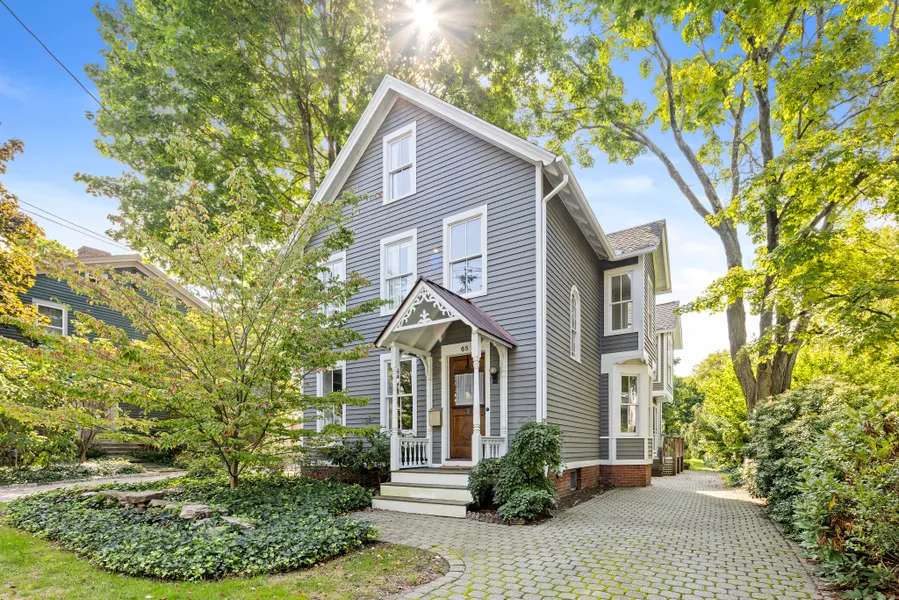 Walking distance to Guilford's quintessential town green, this Victorian style home is turn key! Covered front porch, custom molding, arched windows, shows the extraordinary details in this 1885 home. Classic lines and architecture for the era in which built, yet inside , modern amenities. Through the front door you enter the Piano room, light filled, built-in book shelves and hardwood flooring. Formal staircase greets you to the upper level. Walking though the sitting area, a formal dining room is on the left, ample space for gatherings and beautiful hardwood flooring. The kitchen boasts high end appliances, for the master chef we all inspire to become. An abundance of pantry space. Secondary stair case to the upper level is off the kitchen. A second side entrance off the driveway enters into a foyer area, full bathroom, closet space and open door way to a gathering space for the family. This room is light filled with windows surround, French doors to the patio area, large open floor space, built-in book shelves, fireplace, and beautiful hardwood flooring. The upper level of this home offers a Primary suite with large closet space, windows with views of the back yard, hardwood flooring, soaking/hydro tub for relaxation. Two more generous sized bedrooms, office space, full bath, laundry all on the upper level. Walk to town, restaurants, library, train, and so much more from this very desirable location! This rare find is a special place to call home!