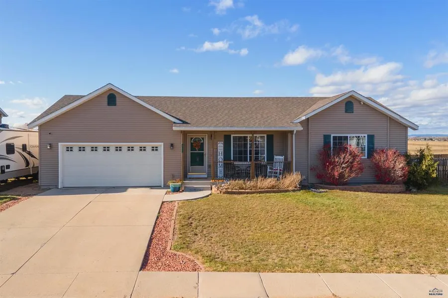 Check out this 2,208 sq. ft., 4 bed, 2 1/2 bath, 2 car oversized garage ranch style home located in Prairie View Estates Subdivision. The main level has an open living/dining room area with luxury vinyl plank flooring, vaulted ceiling, access to garage, and patio door walkout to the large deck where you watch the amazing sunset with no neighbors behind you. The kitchen has Honey Oak cabinets, attractive backsplash, 2-3 counter seating, stainless steel appliances, and wood accented bump-outs with recessed lighting. You also have a master bed/bathroom, an additional bedroom and 1/2 bath. The basement has a HUGE family room, 2 bedrooms (one with hidden Narnia room), and a shared bathroom. Home also has a sprinkler system, sump pit & pump, security system, water softener, privacy fenced back yard, shed, and RV parking. Sellers loved the neighbors, large utility/storage room, no HOA, supersized garage, and the short commute to Ellsworth and Rapid City.
