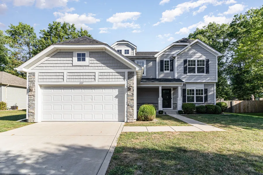 BETTER than brand new! Well Maintained 2 story sitting on large FENCED IN lot in desirable Trail Creek Subdivision offers over 2000 sq ft of finished living space plus full unfinished basement! Home features lovely hardwood flooring throughout main level, welcoming entryway w/ view to upper level, and spacious Eat-In Kitchen that includes island, plentiful cabinetry, access to back yard, and opens to the large family room w/ stunning cathedral ceiling! Main level also offers formal dining and living rooms, plus bedroom & finished laundry room. Upper level has 3 bedrooms including Main Bedroom w/ walk-in closet + closet system and En-SUITE bath w/ soaker tub + shower. Recent upgrades include brand new a/c and furnace, new front door, and newer washer, dryer & refrigerator!