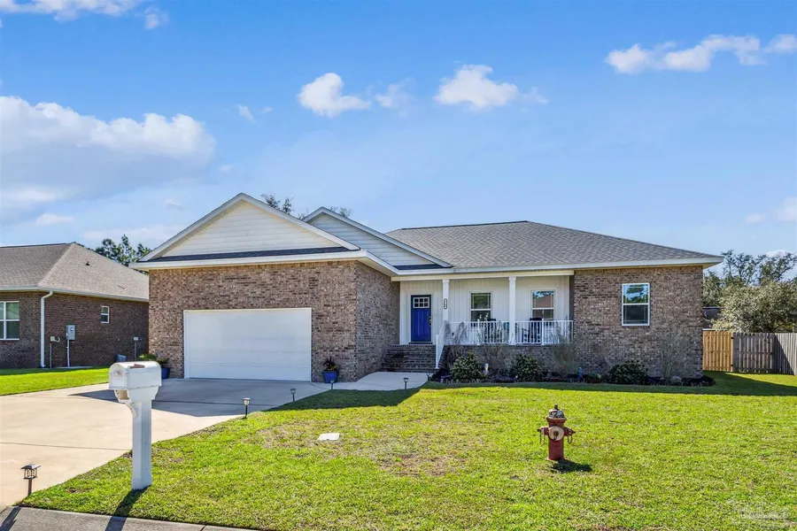 This beautiful 3-bedroom, 2-bathroom energy-efficient Earth Cents Home offers a spacious open and split floorplan, perfect for both comfort and privacy. The large kitchen is the heart of the home, featuring a spacious island with a breakfast bar, granite countertops, and ample custom cabinetry. Throughout the main living areas, you'll find beautiful wood-look tile, while the bedrooms are cozy with carpeting. The great room seamlessly flows into the dining area, with French doors leading to the covered patio and pool deck-ideal for outdoor entertaining. The backyard is ready for outdoor Florida living, with a swimming pool, featuring a concrete pad, firepit area, and a privacy fence, creating a secluded retreat for relaxation and fun. The oversized 2-car garage offers plenty of space for storage and vehicles. Located in a prime area, this home provides easy access to nearby boat ramps for water enthusiasts and is just 10-15 minutes from Gulf Breeze, Pensacola, and Pace. With Pensacola Beach only 30 minutes away, this location offers the perfect balance of convenience and coastal living. Don't miss out on this exceptional property!