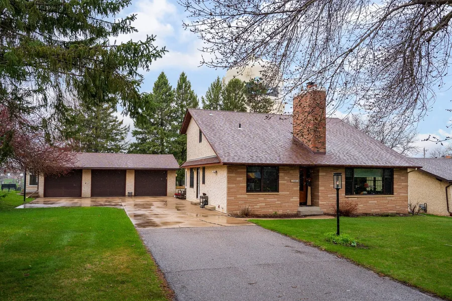Charming home in a private setting on a quiet street! This home gets lots of light & private views, especially in the beautiful 3-season porch. The sunken living room features a large picture window, beamed & vaulted ceilings, and a gas fireplace. The large kitchen has beautiful & plentiful cabinets, a wall oven, and a breakfast bar. The main level bedroom is a great office/work-from-home space! The upstairs, accessed by a spiral staircase, overlooks the living room & features 3 bedrooms & a full bath. The lower level features a cozy family room, a 3/4 bath, plenty of storage space, and an additional bedroom with French doors. The backyard is your outdoor oasis with a concrete patio, hot tub, plumbed outdoor shower, and a gas connected-grill. Plenty of room in the oversized 3-car garage! Move in & enjoy your own private haven!