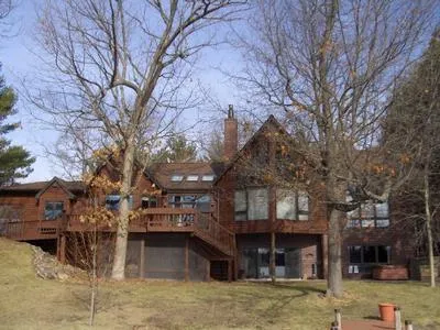 This luxury home was carefully designed to optimize lakefront setting on Chain's Dake Lake. House was crafted to capture views of the lake from every room and every angle. Its architecture follows the bends of the shore and angles to maximize all possible views. The lot and home merge to bring sunrise views into every room of the home. This blend of design and location is also unique due to the closeness to the water. You are just steps from your LL patio and screen porch to your private dock, all on level ground. As soon as you approach the massive front entrance, flanked with glass windows, you know you are somewhere special. Enter the spacious foyer and look straight ahead and into Dake Lake. Cathedral ceilings and walls of windows allow the lake to be part of your living space. The open-concept design hosts a massive 2-sided stone fireplace. Each room is carefully planned to flow so...