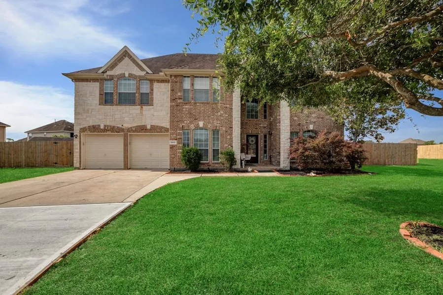 This beautiful home sits on an oversized lot, offering ample space for outdoor activities. Its brick exterior and mature landscaping provide inviting curb appeal. Upon entering, the vaulted ceilings and spacious layout create a bright and airy atmosphere. Beautiful flooring and abundant light throughout the home add a touch of elegance and warmth. The kitchen boasts modern appliances and generous counter space, with an adjacent dining area and attached seating area perfect for entertaining. Upstairs you'll discover a home gym (equipment negotiable) and theater room. The primary bedroom is a comfortable retreat. The fenced backyard and covered patio offer privacy with a well-maintained lawn. Trampoline and storage shed stay! Upgrades include new roof 6/25, water heater and upstairs a/c 2024, fresh interior paint, and an epoxy-coated garage floor. Living room draperies are negotiable. Located in Barbers Hill ISD, low taxes, and close to IH-10. Schedule your showing today!