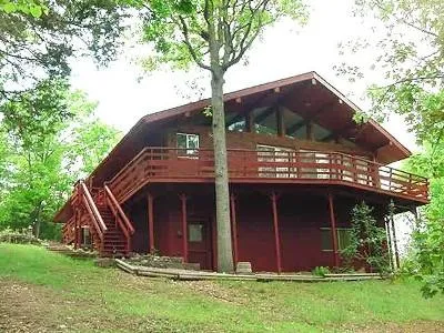 PRIVATE LOCATION yet close to main road for easy access. This home has large rock fireplace, vaulted ceiling & lots of glass in living room, brand new countertops in kitchen, completely new bathroom in main bedroom, freshly painted inside, newly painted wrap around deck with beautiful distant view, architectural roof shingles new in 2006 and partial walk-out basement could be workshop or finished for family room or 4th bedroom.