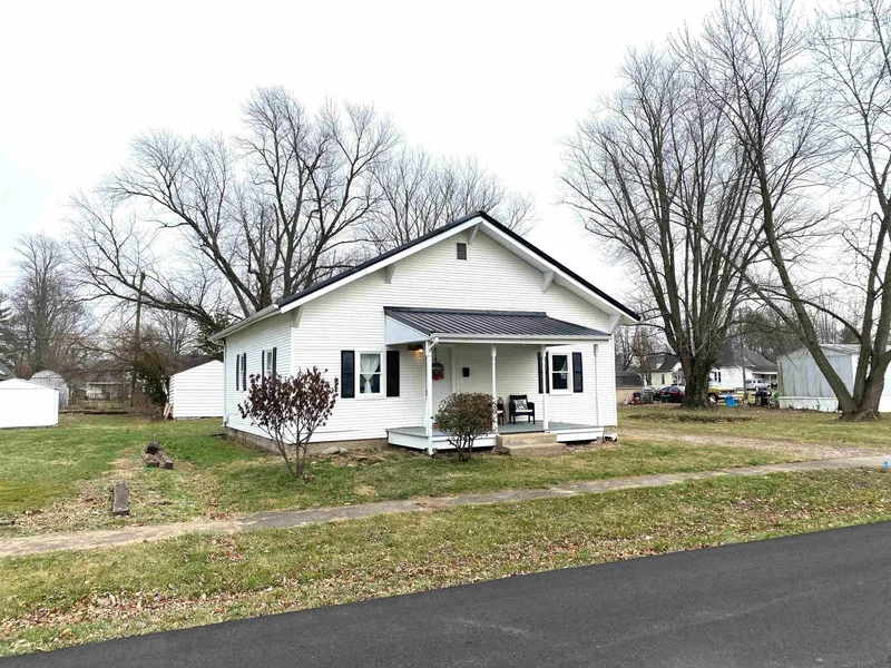 Charming home on a quiet street in Jasonville, this property has had numerous improvements and remodeling done. This 2 bed/1 bath home is just over 1000 square feet, hard to believe with an open living, dining, kitchen floorplan and the abundance of natural light flooding in. With new windows, doors, paint, flooring and fixtures this home is move-in ready. Kitchen offers ample counter space and lots of Oak cabinetry. All appliances, including stackable washer/dryer are included in the sale. Outside the home offers two large inviting porches, a large yard and a new metal roof. There is a 12x14 outbuilding for storage. Property is being sold 'as-is'.
