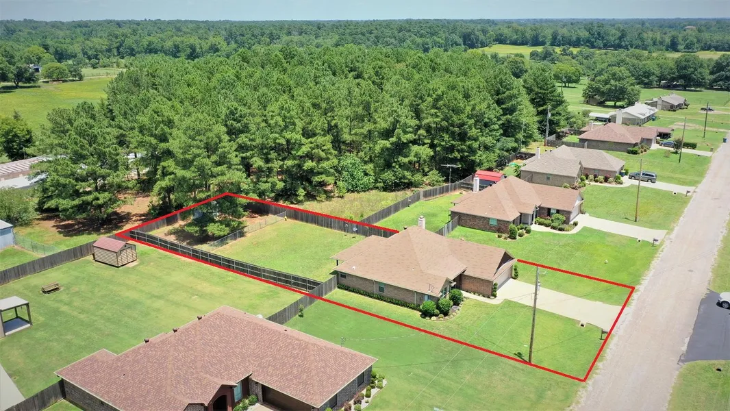 Picture yourself in this pristine property on the quiet outskirts of Marshall, TX. This beautiful brick home sits atop a large, lush yard, welcoming you inside its perfect, move-in ready accommodations. The 2013 3BR/2 Bath 1710 sq ft home boasts an open concept lay out with handsome wood flooring and stunning features throughout. A brick fireplace, granite counter tops, stainless appliances, and a roomy master suite make this a uniquely fabulous find. Enjoy lemonade on the wooden column clad veranda with the privacy of fencing out back. A storage shed and dog run fencing are a plus for any busy household.