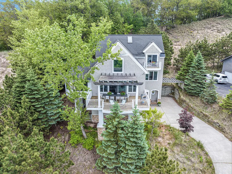 Lakeside Escape with Private Beach Access - Wake up to the beauty of Lake Michigan in this stunning four-bedroom, three and a half-bathroom home, offering deeded access to a pristine, low-bluff beach just off North Shore Drive. It's a short walk to the nearest access to the beach! Whether you're searching for a seasonal retreat, full-time residence, or a high-performing investment property, this home is ready for its next owner and can be negotiated as turnkey—complete with an up to date Short-Term Rental Certificate. The open and airy layout is designed to maximize natural light, creating a bright and welcoming space year-round. A central fireplace adds warmth and charm, while generous windows invite in lake breezes. Outdoor living is just as inviting, with a spacious front porch perfect for sunset views, a screened-in porch tucked against the dunes, and a smaller overhang on the top fl...