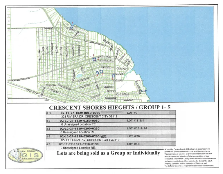 Investment opportunity in the Crescent Shores Heights area . There are a total of 5 Listings equaling 7 Lots for sale in this Group. The Group price is $17,000. Lots can be sold as a group or individually. . *See photos for parcel #'s, location and individual List price. There are 2 more Groups of Lots available for sale as well. See attached Documents for those lots and prices. Each lot is zoned R-2, one is Lake front and the others are not. Lots vary in size from quarter acre to almost half acre.