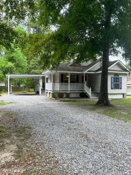 Precious raised cottage home, located north of I-12 yet convenient to shopping and stores. Open floorplan with Laminate wood flooring thru most of home with tile in wet areas. Primary bedroom located with separate entry away from other bedrooms, has step ceiling and private bath. Wood burning fireplace in den flanked by wood shelving for your personal touches with high ceiling. Additional bedrooms on separate hall with full bath in between, front bedroom has vaulted ceiling. Open kitchen includes refrigerator and pantry. Electric is the only utility bill here! Madisonville school district. Well pump is enclosed in a pump shed for protection. Roof replacement in process! Home is priced to sell, so don't wait!