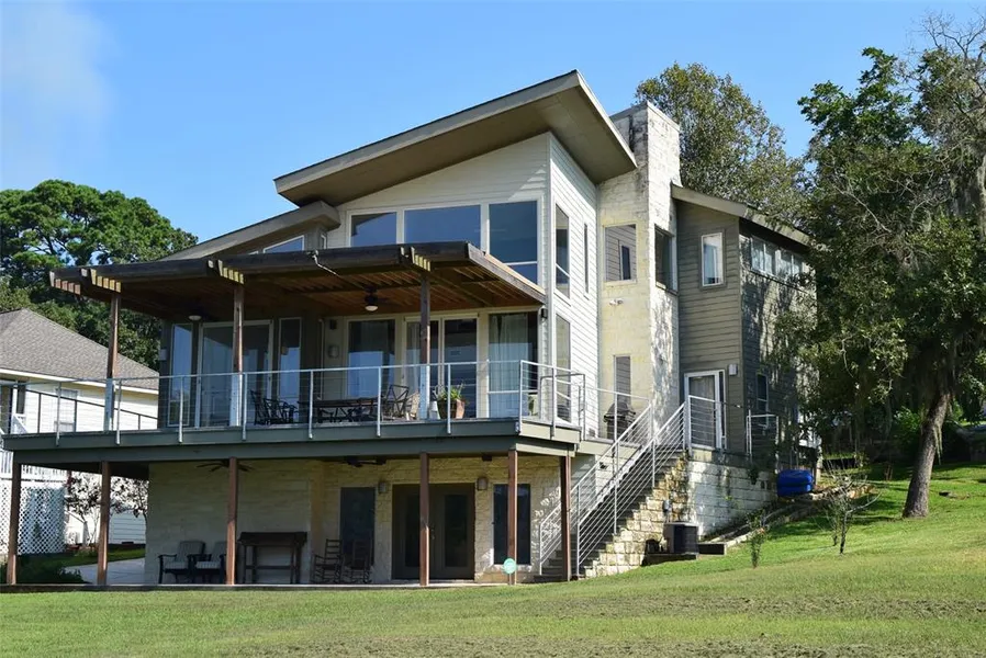 INCREDIBLE 4,385 SF WATERFRONT 5 bed 4.5 bath with gameroom and basement guest quarters with 2nd kitchen area. This home is perfectly set on a hill side allowing for outstanding lake views from all primary living areas. CHEF'S KITCHEN is incredible with a spacious island, huge breakfast bar and stainless steel appliances all overlooking the living room and lake which makes it perfect for entertaining. The breakfast/dining area is directly in front of the lake offering incredible lakeviews. At ground level 2 you have 3 beds 2 full baths. Upstairs level 3 you will have 2 bedrooms, a study, loft and 1.5 baths. In the basement you have guest quarters with a kitchen, living/ dining area, full bath, safe room and covered patio overlooking the lake. The lower guest quarters would also make an outstanding master bedroom. The property does have a bulkhead in place. The .3007 acre lot next door can also be purchased if you are looking for more waterfront property with your home MLS #23085765