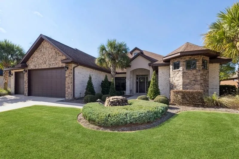 Custom built home located on the prestigious Hidden Creek Golf course and highly sought after Holley by the Sea Community. This home is nestled on a premier lot at the rolling hills of the 5th green tucked into a quiet corner of the neighborhood. All of this and just 10 minutes to Navarre Beach! Natural light is abundant in this home with many windows to enjoy your outdoor views. High ceilings & beautiful interior design throughout. First floor living offers a split floor plan giving the Owner's suite its own privacy. The kitchen, with an abundance of cabinet & pantry space, features Kenmore Elite stainless steel appliances, apron sink, granite countertops, and bar stool seating. The kitchen overlooks the large living room with built in shelving and a view of the golf course. Stepping outside, the covered outdoor back patio welcomes you to outside living with a cozy wood fireplace and TV. Second floor living is dedicated for the media room/5th bedroom. This space features its own large space perfect for setting up a home theater, master home office, or 2nd living space as it has its own bathroom, closet, and French doors that open up to its own private balcony. This amazing home features archways, brick accent wall in dining, pendant, undercounter, and recessed lighting, modern bathrooms and kitchen, surround sound system, security system, and more. See full feature sheet.
