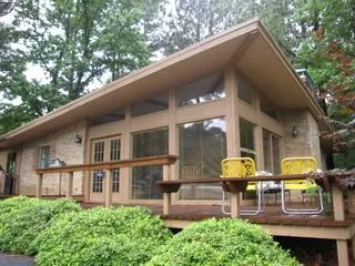Brick and frame adorable 3-1 home with a waterview. Beamed ceiling in living room with a stone fireplace. Wrap around front deck, keystone rock around front circular driveway. Bath with a tub plus a separate shower. Enclosed storage room has washer and dryer. A good buy!