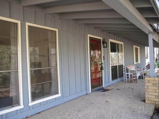 Cottage In The Woods! 3-2 with circular drive sits up high on a graceful hill. 2010 septic and HVAC. Split bedrooms, living room with fireplace, breakfast room + breakfast bar. Lots of glass for wonderful views. Front porch across the front for your rocking chairs! Deck area for barbeque pit and table and chairs. A charming cottage with low maintenance yard.