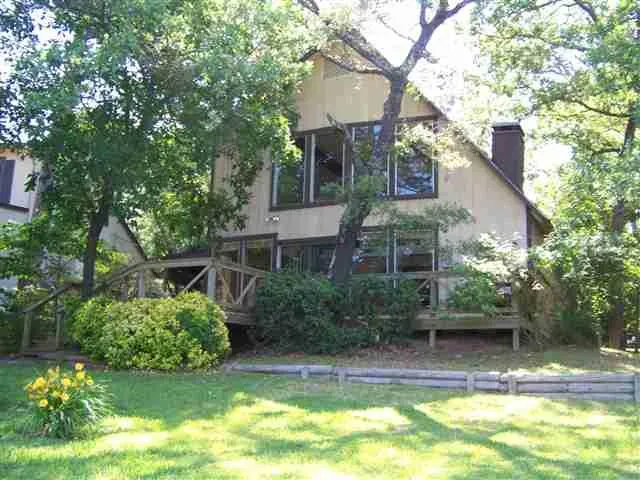Location! This house is situated on one of the prime locations on the middle lake. Somewhat contemporary in style. Living room has corner fireplace and soaring ceiling with clerestory windows overlooking the lake. Kitchen has ceramic tile backsplash. Utility is off the kitchen. Dining area could be formal or casual. Master bedroom could be up or down. Upstairs loft has great view of the lake. Two more bedrooms downstairs with a full bath. Wood deck off the back and wonderful level lot. Good spot on the lake for swimming with gradual sandy entrance. Partially finished bonus room upstairs would make great office or extra sleeping space.