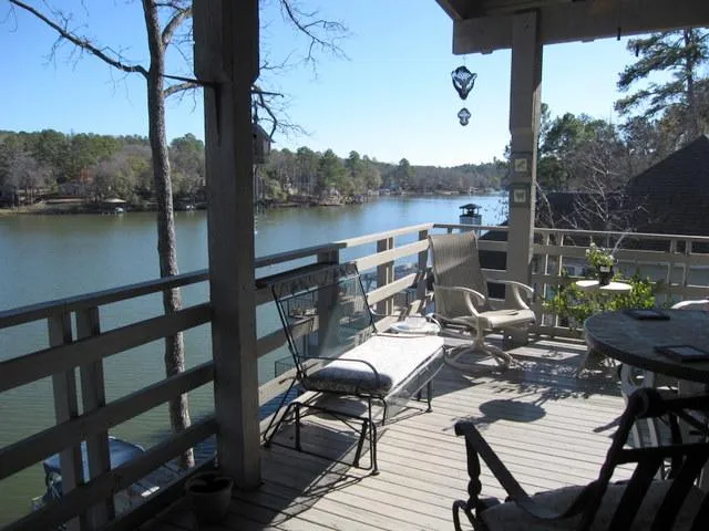 New Price on this Wonderful Waterfront Home! Experience a lakeside panorama with this home graced with a lofty lakeside view. Enter the front door and see nothing but lake straight ahead. Huge comfortable living area that opens to the lake with a large covered deck with ceiling fans - you will never leave this deck! Updated kitchen with breakfast bar opens to dining area and opening to the deck. One bedroom on upper level. On lower level huge gameroom with office section. Master bedroom is on lower on the lake side. His/her master bath. Wonderful walkways and patios. Now this is a lake house!