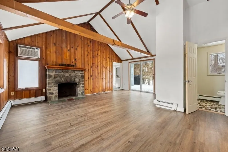 Charming Ranch Home with Serene Lake Views .This lovely ranch-style home offers a perfect blend of comfort and style. Step inside to find a beautifully updated, eat-in kitchen that's perfect for gatherings. The spacious living and dining rooms feature soaring cathedral ceilings and a stunning stone fireplace, creating a warm and inviting atmosphere. Relax on the front or rear decks, both ideal for enjoying the peaceful surroundings and the scenic view of one of the seven lakes nearby. The home also boasts plenty of storage space, including an above-ground oil tank and hot water baseboard heating for year-round comfort. For added peace of mind, this home is equipped with a hookup for a backup generator, ensuring you'll stay comfortable even during power outages. Just a short walk to the beach, this property is part of a vibrant community with an array of amenities, including a beautiful clubhouse. Don't miss the opportunity to make this peaceful retreat your own!