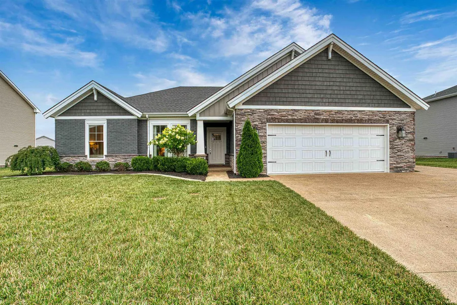 This traditional ranch home with an in-ground pool exudes charm and elegance. With its immaculate exterior boasting fantastic curb appeal, oversized garage, and custom landscaping, this property is a true gem. The backyard oasis with an in-ground pool adds a touch of luxury and relaxation to the already picturesque setting. This home's open floor plan welcomes you with seamless transitions between living areas. The 3 bedrooms offer ample space for relaxation and privacy, while the 2.5 baths provide convenience for daily routines. Enjoy a cozy evening by the gas log fireplace and with the convenience of remote-controlled blinds you can adjust the lighting and maintain privacy with just the touch of a button. The kitchen, with bright white cabinetry, black slate appliances, granite countertops, and a kitchen island with breakfast bar seating, exudes a modern, sleek aesthetic. The owner suite features luxurious amenities like an en suite bathroom with a spacious 12X8 walk-in California style closet. The raised height double vanity adds a touch of elegance, while the intricately tiled shower offers a spa-like experience for maximum comfort and relaxation. The private backyard oasis offers a luxurious retreat with a covered patio, spacious backyard, custom fire pit, and an in-ground salt water pool. The pool's custom lights and fountains add a touch of sophistication and relaxation to the outdoor space. This stunning home is like new and well-maintained, making it a perfect opportunity not to be missed.