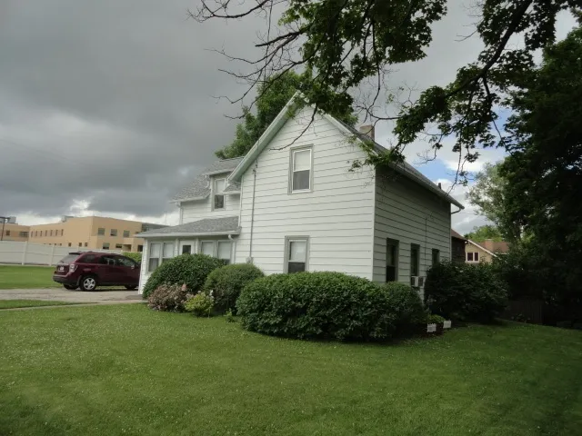 Older 2 story home with a 1 car detached garage on a large corner lot. 2 nice sized bedrooms on the upper level with good sized closets. Bathroom with tub on upper level. Additional storage cabinets on upper level hallway. One bedroom on main floor with toilet and closet. Good sized dining and living room with a small kitchen. Seller needs to secure housing before closing on home.