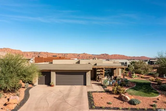 Gorgeous, upgraded home custom built by SplitRock in the infamous Palisades community surrounded by red mountain views. Inside is structured w/rock walls, barn doors, shiplap, vaulted ceilings and large view windows w/sliding glass doors. New cabinetry, granite countertops & epoxy garage floors. Enjoy your backyard oasis beyond the covered patio w/hot tub, fire pit & energy efficient solar panels.