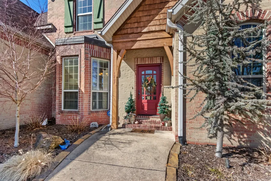 Spacious and charming 4 bedroom, 3 1/2 bath home in Chapel Hill. Prime location less than a mile from Crystal Bridges Museum, Amazeum Children's Museum, Orchards Park, and Memorial Park. Near downtown Bentonville, multiple trails, schools, and Walmart's home office. This home's main floor provides two living areas (one with stone fireplace), a formal dining room and eat-in kitchen with large oversized island, a private office with hidden storage behind built-in bookcases, wet bar, and large laundry/mud room, along with the master bedroom with fireplace and master bath with a spacious walk-in closet. Upstairs is an oversized bonus room with walk-in attic storage, 3 bedrooms, 2 full baths, and a laundry chute. Attached 3-car garage and large above ground tornado shelter. The outdoor area is made for entertaining with an enclosed screened-in patio, stone-paved open patio, large yard, and gorgeous professional landscaping and outdoor lighting. New roof in 2019, new furnaces in 2020 and 2021, and new water heater upstairs in 2021 and main floor in 2022. All of this and more in a family-friendly community with paved paths connecting to surrounding walking and biking trails and paved walking trails to the community pool, playground, and clubhouse.
