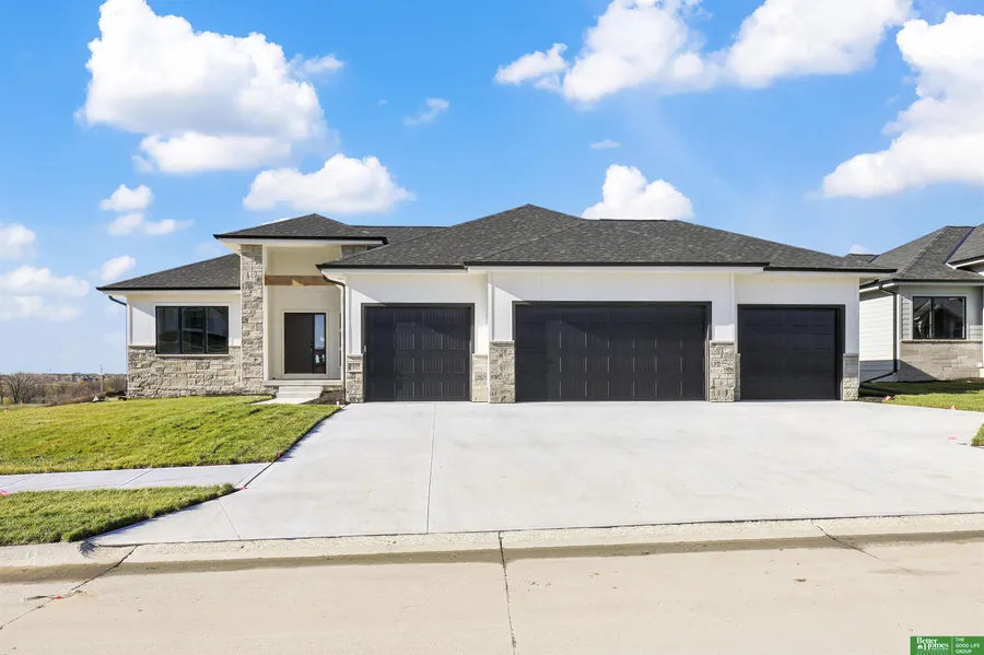 Meet Tyler from Hildy Homes. Tyler is dependable, likable, and always ready for a good time. He has all the handsome finishes you've come to love from a Hildy Home like quartz countertops, ceramic tiles, engineered hardwood floors, custom cabinetry with soft close doors and drawers in the kitchen, stainless steel appliances, aluminum clad Pella windows, and so much more! Tyler is practical and honest. He has 1,890 finished sq. ft on the main level including 2 bedrooms & a primary suite that connects with the laundry room through the closet which makes doing laundry a little less of a nuisance. Tyler has a finished basement with two additional bedrooms, flex room, family room with wet bar w/ island & 3/4 bath. This guy also gives you peace of mind with a 1 year builder's warranty. LOCATED IN ELKHORN NORTH SCHOOL DISTRICT. MOVE IN READY! Listed finishes are deemed reliable but subject to change at the builder's discretion without prior notice.