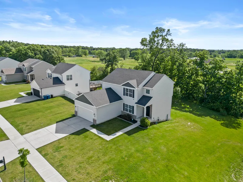 "Step into luxury with this exquisite move-in condition Two-Story Home, offering the perfect blend of elegance and comfort. Boasting 4 generously-sized bedrooms and 3 tastefully designed bathrooms, this home provides ample space for relaxation and rejuvenation. The expansive living areas on the main floor which are perfect for entertaining include the Great Room with a fireplace adjacent to the kitchen with all stainless steel appliances, a center island that sets across from the dinette room that also leads to the large rear two-story deck. The office/den is featured on this floor as well as a 1/2 bath and the laundry room w/washer & dryer is included too! The attached 2 car garage entrance is through the laundry room as well. The upper level features 2 additional baths & very spacious bedrooms. The basement has plenty of room to fulfill your idea of future finishing plans as well as it is a walk out basement that leads to a somewhat private back yard. This lot has views of the 2 subdivision ponds to the north of it and to the east of it. Truly a very relaxing setting. This is a very well designed home and lot that invites endless possibilities for quality time with family and friends. Picture yourself savoring the breathtaking views from the large windows or stepping out onto the picturesque lot to take in the beauty of the surroundings. Nestled in the heart of the desirable Winfield/Crown Point neighborhood and part of the esteemed Crown Point school district. Its prime location offers a harmonious balance between the tranquility of suburban living and the convenience of nearby amenities and attractions. Shopping, fine dining, parks, Lake Michigan Duneland National Dunes, Chicagoland only 50 minutes away, truly the Cross roads of America Area. With all appliances included, this move-in-ready home offers a seamless transition for you. Don't miss the opportunity to become a part of this thriving community and experience the pinnacle of luxury living.