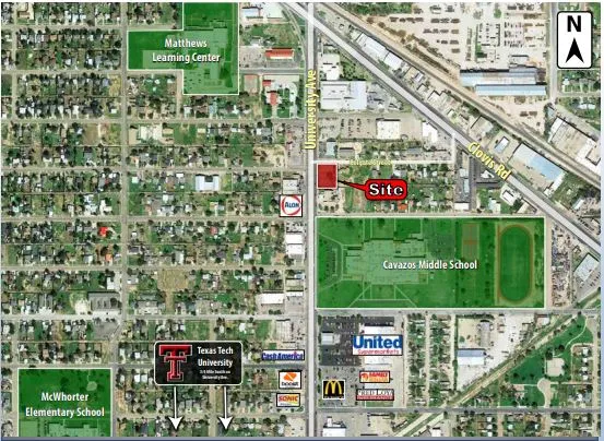 This property fronts University Avenue and Colgate Street. It is located 3/4 miles north of Texas Tech University and the newly developed Overton Park. Nearby tenants include McDonald’s, Panda Express, Dominos, United Supermarkets and Prosperity Bank.