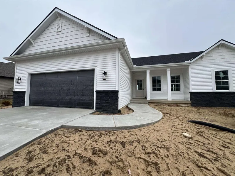NBV 72--UNDER CONSTRUCTION Luxurious modern craftsman ranch home in popular Northbridge Valley in the PHM district! This is the smartly designed 'Lauren' floor plan, updated for 2024, by Devine Homes by Miller, one of Michiana's most highly respected builders. An open concept, split bedroom ranch that features 4 bedrooms and 3.5 bathrooms. Spacious living in the expansive great room with luxurious 10' ceilings, transom windows, and a 42 gas fireplace. Open kitchen has quartz counters, tile backsplash, generous 4-person island seating, dining area, and stainless appliance package. You'll love the large walk-in pantry, too. Slider to a 16'x16'' deck. The first-floor primary suite has 10' tray ceilings, a large walk-in closet with convenient access to the laundry room, and primary bath with double sink vanity and a walk-in tile shower. The additional bedrooms are situated in a private wing with a full bath and tub/shower combo. Mudroom and laundry with cabinetry off of the 2-car garage plus a convenient guest bath. Full basement has the 4th bedroom, full bath, and rec room. Fully sodded front yard, landscape package, and irrigation system included as well as a Ring doorbell!