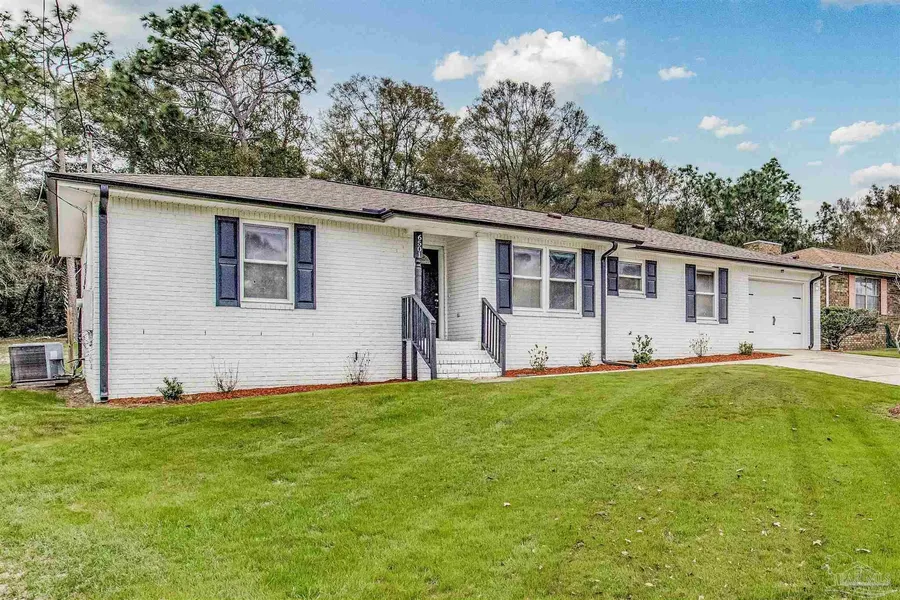 This recently remodeled 3 Bedroom, 2-Bathroom home offers modern amenities and an expansive backyard, all while feeling warm and inviting inside. The spacious living room provides plenty of room for entertaining or enjoying an evening movie with your family. New flooring, shutters, hot-water heater, and a roof replaced in 2018 makes living here hassle free. Coupled with the renovated, wood-burning fireplace, this home is perfect for those stormy nights in Pensacola. The master bedroom features a huge walk-in closet and en-suite bathroom while the additional bedrooms boast large closets of their own. The kitchen has plenty of counter space with a breakfast bar and nook. Attached to the kitchen is the garage, which makes those pesky grocery trips to the store a breeze! Outside, the beautiful and sprinklered grass yard adds to the great curb appeal and new side fencing allows for privacy in the backyard. The garage door, chimney, storm doors, fans, and baseboards were also all replaced in 2018! Don't miss out on the opportunity to own this gorgeous home!