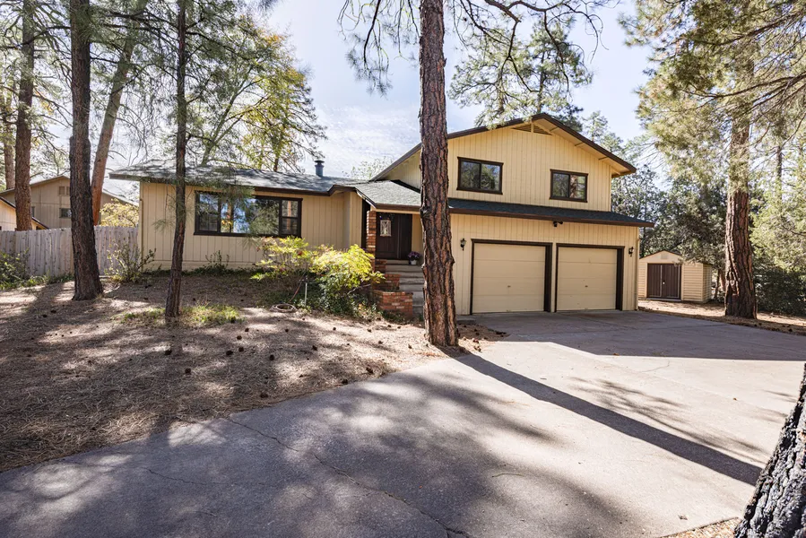 Beautiful 1960+/-sq.ft. Payson 4 bedroom, 3 bath with 2 car garage home with NO HOA! This fantastic home sits on a large 1/3+/-Acre cul-de-sac lot with large Ponderosa trees, Green house, 2 water storage units & chicken mansion! You'll love this multi level home with just a few stairs at one time, that has a covered back deck, fenced yard & plenty of room for RV/Toys. Main level features you living room w/wood fireplace, kitchen & dining area. Upper level has your primary suite with full bath, direct deck access, 2 more bedrooms & another separate back. Lower level has your 4th bedroom, ¾ bath, laundry & direct access to your 2 car garage that has 220 hookups. Your kitchen features include your electric range, oven, microwave & dishwasher. New roof installed in 2023! Another Must See!!