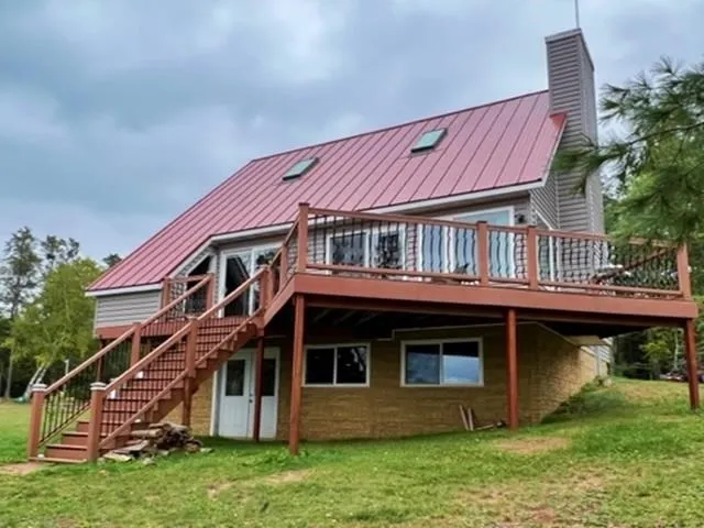 Wow! Newer 2 BR+ home with sandy frontage perched upon Lost Lake! A scenic setting w/70’ frtg for this custom-built home built in 2015. Boasts an open-concept KT/LR with cathedral ceiling, high efficiency pellet stove, and with 2 sets of patio doors that lead to the wrap-round deck. Loft area used as 3rd BR. Full walkout basement with potential 26 x 14 rec. room. As an added bonus it is sold furnished! Metal roof, premium siding, and composite decking. This offers warm, sandy frtg w/incredible views on this 21 acre, 20' deep private lake. Deeded access to 36 acres across the road to play on. This is located at the end of a quiet dead-end road for seclusion and offers excellent ATV trail access. Recreational fun all year long and within an hour’s drive of Green Bay.