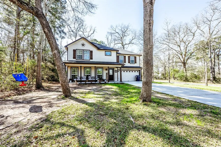 Nestled in the serene Frontier Lakes neighborhood of Willis, TX, this stunning farmhouse chic style home offers 4 bedrooms, 2.5 baths, and a massive 1/3 acre corner lot. Sunlight pours through abundant windows, highlighting the open-concept living space with elegant hard floors downstairs. The stylish kitchen boasts granite countertops and ample storage, perfect for any home chef. Upstairs, spacious bedrooms provide comfort and tranquility. Enjoy a 2-car garage and the charm of a peaceful community surrounded by nature. The oversized corner lot allows for privacy from neighbors and also has a fire pit out back for a gorgeous night under the stars in your very own backyard. The community offers 3 private lakes for fishing and non-motorized boating, 3 lakeside parks, a wooded nature reserve, and a refreshing pool. Embrace modern comfort and rustic charm in a nature-filled retreat - schedule your showing today!