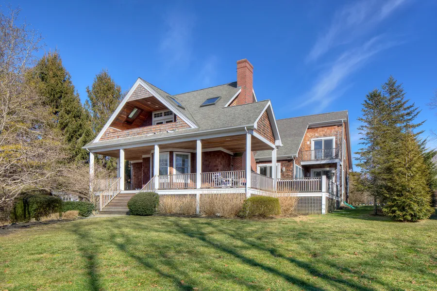 Spacious cottage in close proximity to Mackerel Cove and the Village. Built in 2003, this thoughtfully laid out 3600-sq. ft. is the perfect entertaining home. First floor offers a mudroom, chefs kitchen featuring a six-burner stove, new stainless steel refrigerator, plenty of counter space, large separate pantry, and additional beverage and coffee area. The counter seats three comfortably and opens to the dining area featuring cathedral ceilings, a wall of windows, and built-in bench seat. The kitchen opens up to an expansive great room with a wood-burning fireplace, a charming built-in bench seat, and teak-and-holly accent countertops and shelving throughout to add to the nautical charm. The second large living room on the first floor has a built-in media center, two sets of French doors and a separate office, great potential for first-floor principal suite or guest quarters down the li...