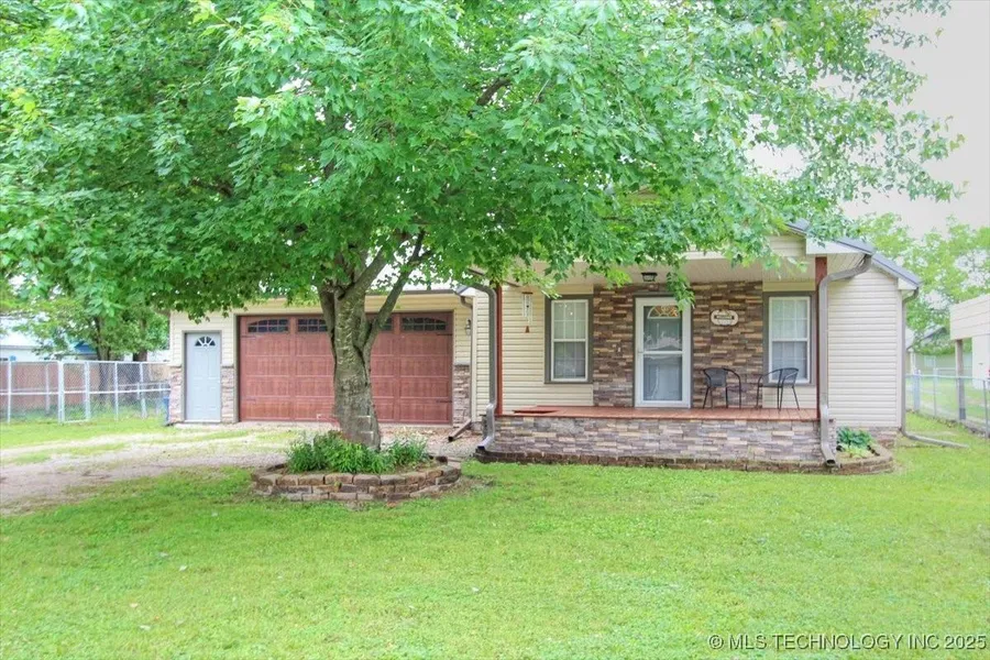 This charming 3 bedroom, 2 bathroom home was fully remodeled in 2018! The large living area opens to the beautiful chef's kitchen with a formal dining area, a refrigerator that stays with the home, and a spacious pantry with plenty of shelving and countertop space. The primary bedroom has a private bath with double-sinks and 2 walk-in closets. Inside utility room with sink and ample storage. Over-sized garage with work area, cabinetry and shelving. Lovely covered front porch overlooking large yard. Seller is offering a 1 year home warranty! Don't miss it!