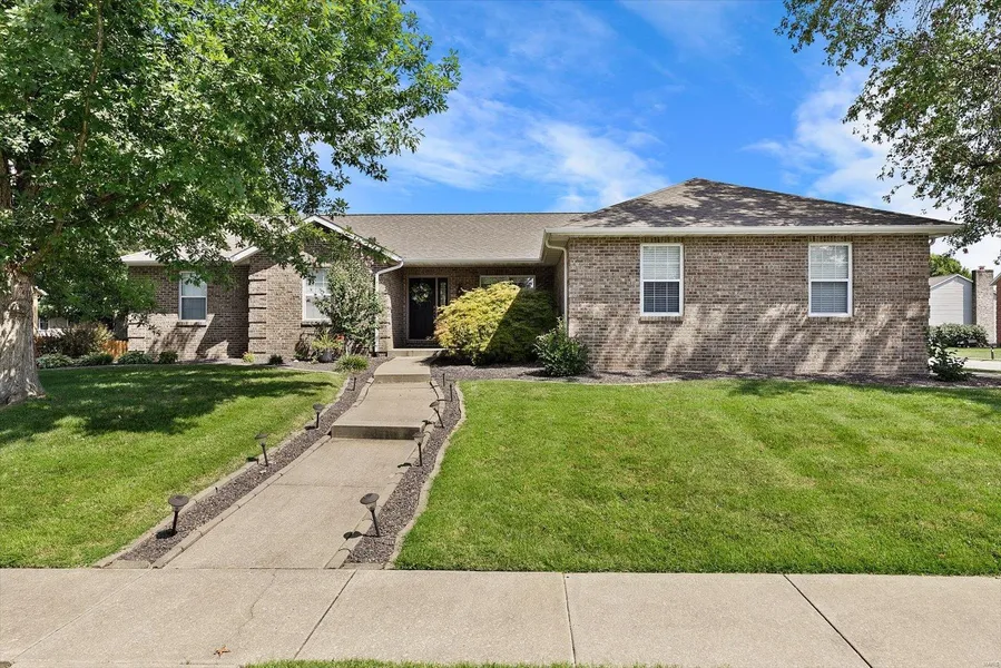This updated ranch on a corner lot in OFallon schools has been nicely updated, beautifully maintained, and offers over 4000 square feet of living space! Step into the front door from the covered front porch to find a lovely foyer with wood floors that continue throughout the living and dining room areas. The living room offers a vaulted ceiling, built in bookcases and a gas fireplace. The adjacent kitchen has been nicely updated with stainless appliances and Cambria countertops. The covered deck off the kitchen overlooks the fenced backyard for outdoor enjoyment. Three bedrooms complete the main floor and the primary bedroom suite offers a walk-in closet and a nicely updated bathroom with a separate jetted tub. Downstairs find a huge family room with a wood-burning fireplace, a large finished recreation area, two bonus rooms with closets, and a full bathroom. See this beauty before it sells! Agent Related.