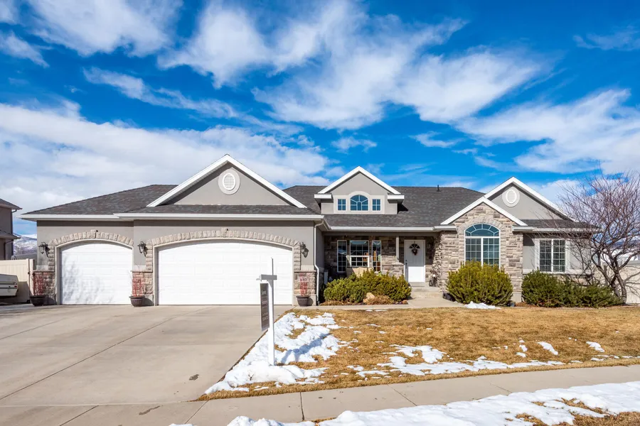 Gorgeous, immaculate home with sunny and spacious open floor plan in a quiet desirable neighborhood. This home features immediate curb appeal with meticulous landscaping, beautiful waterfall water feature, stamped concrete patio with tiki bar, overlooking endless mountain views! Walk in to discover a beautiful open floor plan with vaulted ceilings, rock fireplace, spacious gourmet kitchen, and main floor master suite. Wonderful combination of quality, privacy, and comfort with spectacular views. 3-car garage with Epoxy finish and room to grow in the spacious open basement. Endless adventures await with mountain trails, 3 world-class ski resorts, 5 top-rated golf courses, fishing, boating, river rafting, biking, hiking, and just 45 minutes from Salt Lake City International Airport.